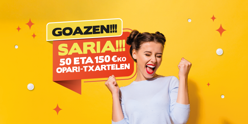 Maiatzaren 23tik ekainaren 14ra, zure erosketek sariak ekarriko dizkizute. Astero 50€ eta 150€-ko opari-txartelak zozkatuko ditugu. Batu zaitez dibertsiora eta utzi zure erosketek sorpresa handiak ematen!