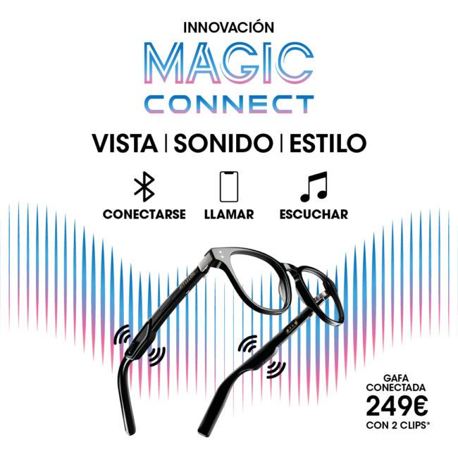 Ezagutu MAGIC CONNECT, patilla trukagarriak dituen lehen MAGIC betaurreko konektatua.Berrikuntza, estiloa eta teknologia uztartzen dituen proposamen moldakorra da; optika eta audioa batuz, dendan arreta piztu eta gehiago bilatzen duen bezeroarekin konektatzeko.